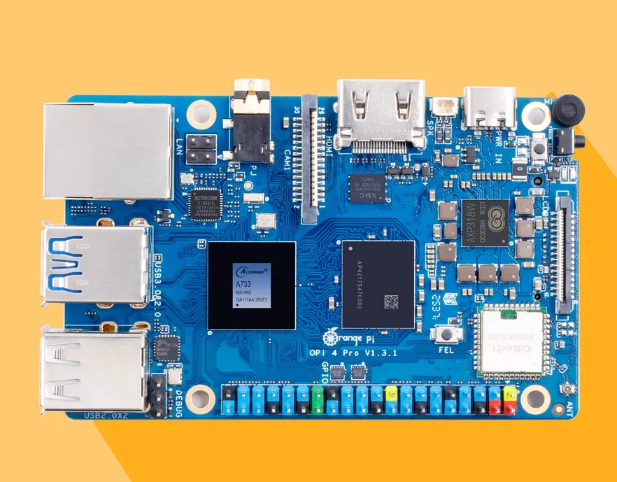 Orange Pi development board is not only a consumer product, but also designed for anyone who wants to use technology for creative innovation. You can use it to build a computer, a wireless web server, a game console, a music player, a HD video player, a speaker, an AI vision cart, an AI vision robotic arm, a digital camera ......, use it to learn Linux, Python, it is a very simple, fun and practical tool, and a great helper for programming learning, you can use it to build the world around you.